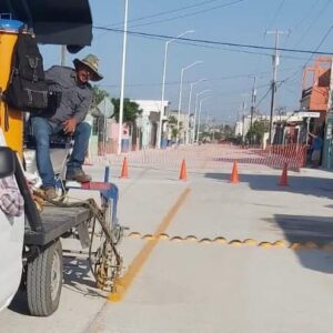 La avenida México, desde El Pasito hasta la lateral sur del canal Rodhe, entre los fraccionamientos Moderno y Los Nogales, fue señalizada con las líneas de tráfico divisorias para definir los carriles de circulación.