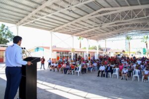 “Quiero decirle a todos niños y niñas, que ustedes son nuestro futuro y para lo que estamos trabajando es para que ustedes puedan ser lo que gusten, Maestros, Ingenieros, Médicos, que siempre vayan por el camino del bien”, dijo el Alcalde, acompañado por el Secretario de Obras Públicas, Eduardo López Arias; la Secretaria de SEDESOL, Hidilberta Velázquez Mendoza; el Regidor Coordinador de la Comisión de Educación, Jaime Arratia Banda y miembros del Cabildo.