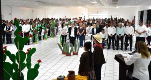 La ceremonia se llevó en el Salón Polivalente, con los tradicionales honores a la bandera, con la participación de autoridades municipales, sindicales, jefes de sector, supervisores, directores de diferentes instituciones educativas, regidores del cabildo, maestros y padres de familia.